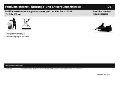 | Titel: | Luftfilterkastenabdeckung airbox cover passt an Ktm Exc 125 250 12-13 Sx 150 sw |