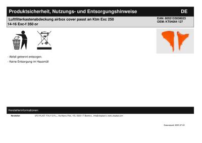 | Titel: | Luftfilterkastenabdeckung airbox cover passt an Ktm Exc 250 14-16 Exc-f 350 or |
