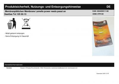 | Titel: | Membranplättchen Membrane Lamelle power reeds passt an GasGas Txt 125 02-13 |