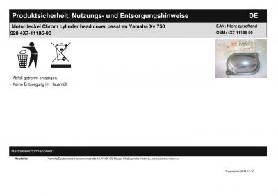 Titel: | Motordeckel Chrom cylinder head cover passt an Yamaha Xv 750 920 4X7-11186-00 |