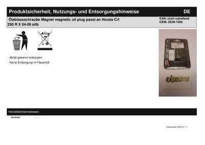 Ölablassschraube Magnet magnetic oil plug passt an Honda Crf 250 R X 04-09 silb
