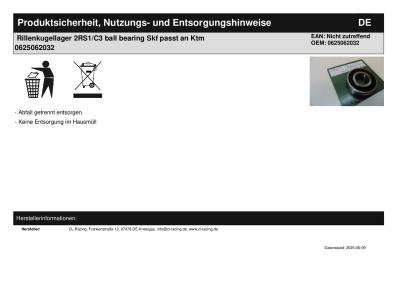 | Titel: | Rillenkugellager 2RS1/C3 ball bearing Skf passt an Ktm 0625062032 |