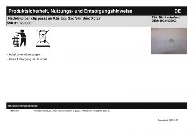 | Titel: | Nadelclip bar clip passt an Ktm Exc Sxc Smr Smc Xc Sx 590.31.029.000 |