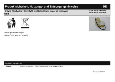 | Titel: | Öltank Ölbehälter 19,5x13x16 cm Motoröltank motor oil reservoir weiß |