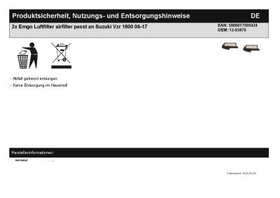 | Titel: | 2x Emgo Luftfilter airfilter passt an Suzuki Vzr 1800 06-17 |