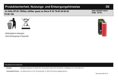 | Herstellernummer: | HF161 |