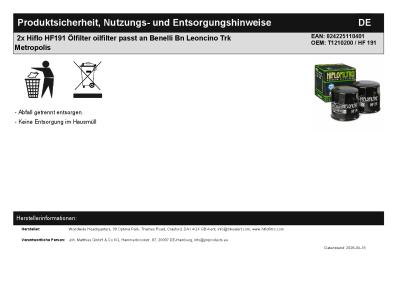| Herstellernummer: | T1210200 / HF 191 |