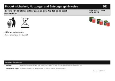 | Titel: | 3x Hiflo HF132 Ölfilter oilfilter passt an Beta Alp 125 00-03 passt an Suzuki An |