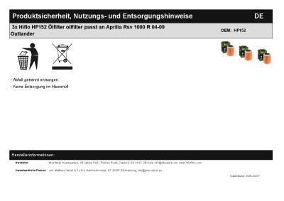 | Titel: | 3x Hiflo HF152 Ölfilter oilfilter passt an Aprilia Rsv 1000 R 04-09 Outlander |