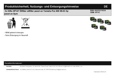 | Titel: | 5x Hiflo HF147 Ölfilter oilfilter passt an Yamaha Fzs 600 98-03 Xp passt an Sym |