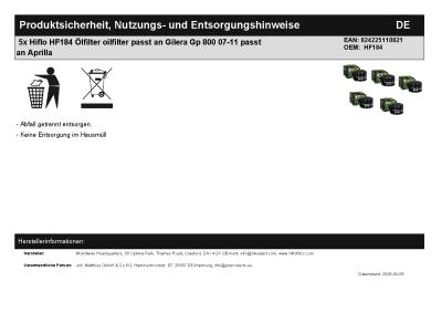 5x Hiflo HF184 Ölfilter oilfilter passt an Gilera Gp 800 07-11 passt an Aprilla