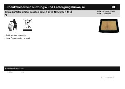 | Titel: | Emgo Luftfilter airfilter passt an Bmw R 65 80 100 76-95 R 45 60 75 |