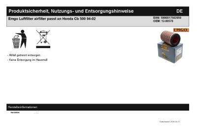 | Titel: | Emgo Luftfilter airfilter passt an Honda Cb 500 94-02 |
