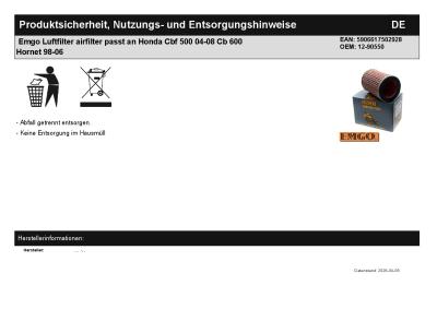 | Titel: | Emgo Luftfilter airfilter passt an Honda Cbf 500 04-08 Cb 600 Hornet 98-06 |