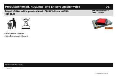 | Titel: | Emgo Luftfilter airfilter passt an Suzuki Dl 650 V-Strom 1000 Klv 1000 04-06 |