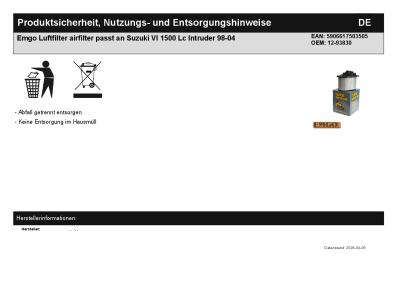 | Titel: | Emgo Luftfilter airfilter passt an Suzuki Vl 1500 Lc Intruder 98-04 |
