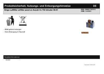 | Titel: | Emgo Luftfilter airfilter passt an Suzuki Vs 750 Intruder 96-91 |