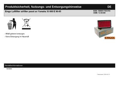 | Titel: | Emgo Luftfilter airfilter passt an Yamaha Xt 600 E 90-95 |