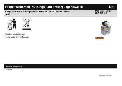 | Titel: | Emgo Luftfilter airfilter passt an Yamaha Xtz 750 Super Tenere 89-97 |
