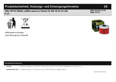 | Titel: | Hiflo HF103 Ölfilter oilfilter passt an Honda Cb 300 18-23 Crf 250 17-21 |