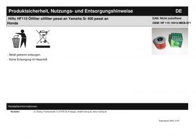 Titel: | Hiflo HF115 Ölfilter oilfilter passt an Yamaha Sr 400 passt an Honda |