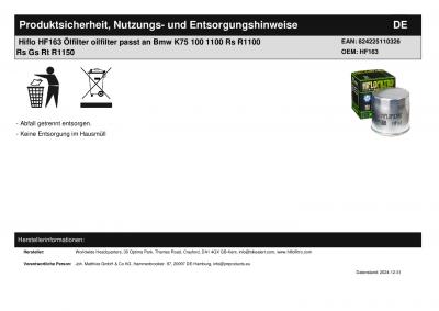 Hiflo HF163 Ölfilter oilfilter passt an Bmw K 75 85-97 100 1200 R 1100 R 1150