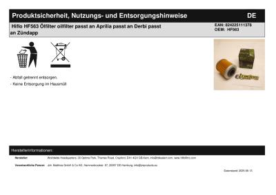 Titel: | Hiflo HF563 Ölfilter oilfilter passt an Aprilia passt an Derbi passt an Zündapp |