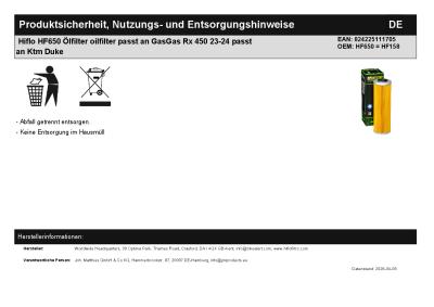 | Titel: | Hiflo HF650 Ölfilter oilfilter passt an GasGas Rx 450 23-24 passt an Ktm Duke |