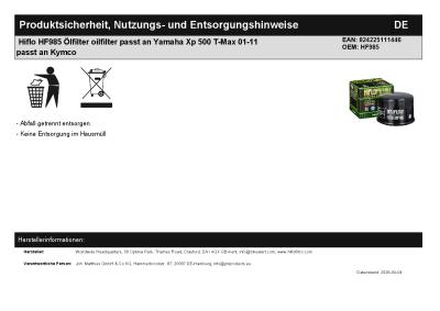 Hiflo HF985 Ölfilter oilfilter passt an Yamaha Xp 500 T-Max 01-11 passt an Kymco