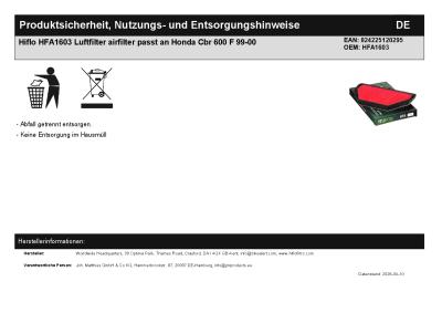| Herstellernummer: | HFA1603 |