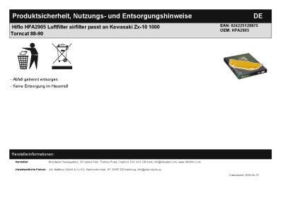 | Titel: | Hiflo HFA2905 Luftfilter airfilter passt an Kawasaki Zx-10 1000 Torncat 88-90 |