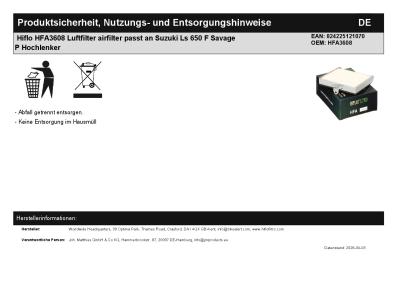 | Titel: | Hiflo HFA3608 Luftfilter airfilter passt an Suzuki Ls 650 F Savage P Hochlenker |
