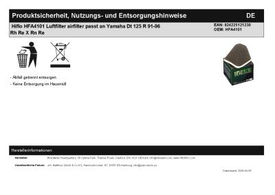Hiflo HFA4101 Luftfilter airfilter passt an Yamaha Dt 125 R 91-96 Rh Re X Rn Re