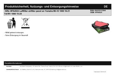 | Titel: | Hiflo HFA4924 Luftfilter airfilter passt an Yamaha Mt-10 1000 16-21 Yzf-R1 1000 15-24 |