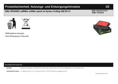 | Titel: | Hiflo HFA5005 Luftfilter airfilter passt an Kymco Xciting 500 05-13 |