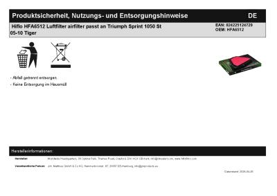 | Titel: | Hiflo HFA6512 Luftfilter airfilter passt an Triumph Sprint 1050 St 05-10 Tiger |