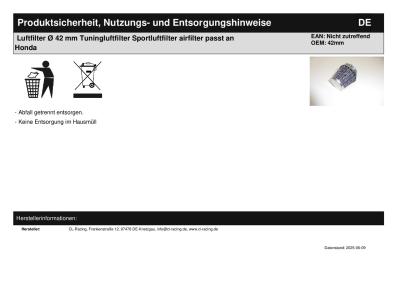 Titel: | Luftfilter Ø 42 mm Tuningluftfilter Sportluftfilter airfilter passt an Honda |