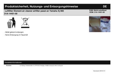 | Titel: | Luftfilter Element air cleaner airfilter passt an Yamaha Xj 900 31A-14451-00 |