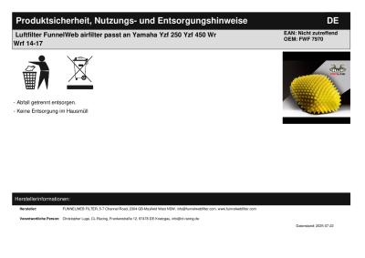 | Titel: | Luftfilter FunnelWeb airfilter passt an Yamaha Yzf 250 Yzf 450 Wr Wrf 14-17 |