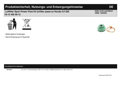 Titel: | Luftfilter Sport Power Flow Kit airfilter passt an Honda Crf 250 10-13 450 09-12 |
