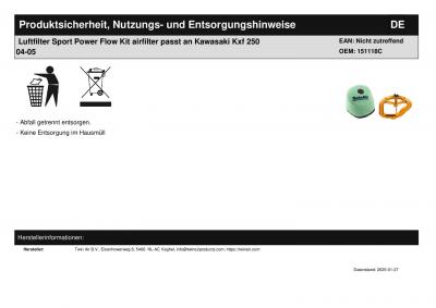 Titel: | Luftfilter Sport Power Flow Kit airfilter passt an Kawasaki Kxf 250 04-05 |