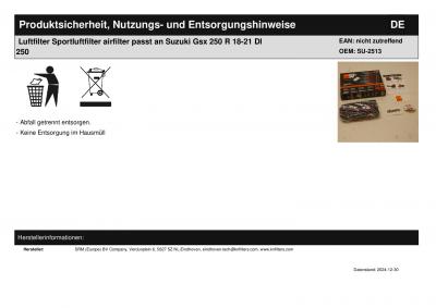 Titel: | Luftfilter Sportluftfilter airfilter passt an Suzuki Gsx 250 R 18-21 Dl 250 |