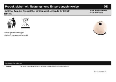 Titel: | Luftfilter Twin Air Rennluftfilter airfilter passt an Honda Crf Cr250f R 04-05 |