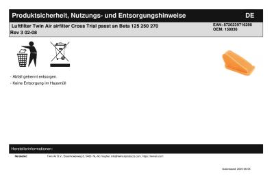 Titel: | Luftfilter Twin Air airfilter Cross Trial passt an Beta 125 250 270 Rev 3 02-08 |