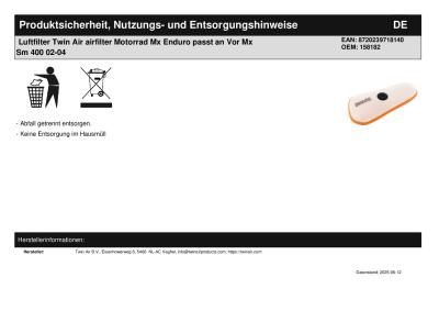 Titel: | Luftfilter Twin Air airfilter Motorrad Mx Enduro passt an Vor Mx Sm 400 02-04 |