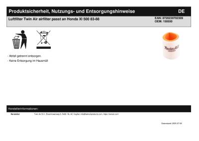 Titel: | Luftfilter Twin Air airfilter passt an Honda Xl 500 83-88 |