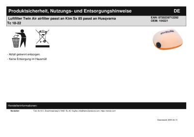 | Titel: | Luftfilter Twin Air airfilter passt an Ktm Sx 85 passt an Husqvarna Tc 18-22 |