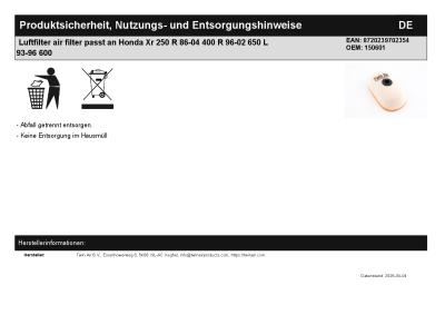 | Titel: | Luftfilter air filter passt an Honda Xr 250 R 86-04 400 R 96-02 650 L 93-96 600 |