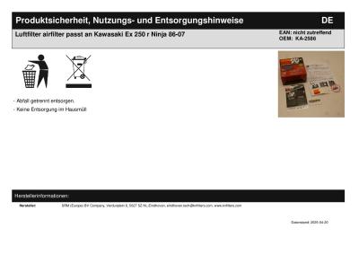 Titel: | Luftfilter airfilter passt an Kawasaki Ex 250 r Ninja 86-07 |