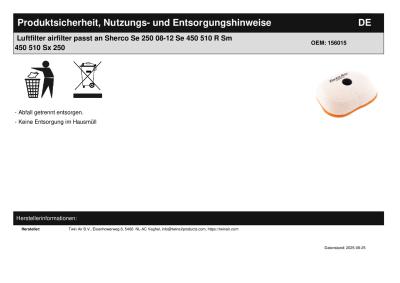 | Titel: | Luftfilter airfilter passt an Sherco Se 250 300 450 510 R Sm 450 510 Sx 250 |